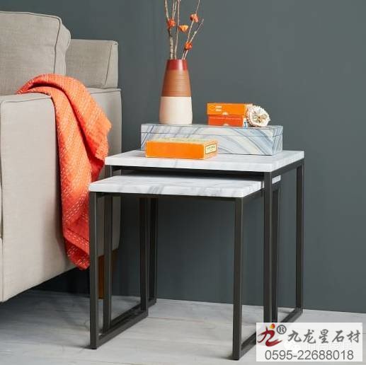 ↑真正的大理石臺面,在顏色和紋理上每一只都獨一無二。一套里面高低兩件的設(shè)計,為小戶型靠慮得很周全,有需要的時候把小的那只抽出來,想節(jié)約空間就放回去,好看還不占地。