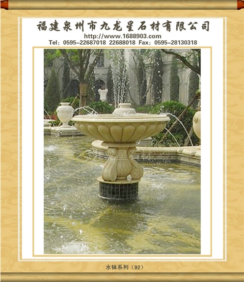 石雕噴泉(水缽),風(fēng)水球,鴻福輪,大水發(fā)園林水景,石雕小橋流水,水榭亭臺(tái)等東西方園林景觀石雕花缽亭臺(tái)。藝術(shù)噴泉光潔細(xì)膩、亮麗迷人;除具有極高的觀賞和審美價(jià)值外,還可在水流往復(fù)噴射的過(guò)程中,將空氣中的塵埃粉粒吸附于水中沉淀,從而將空氣凈化,水分揮發(fā)又能對(duì)空氣進(jìn)行有效加濕,改善和潤(rùn)澤氣侯;它在汲取了大自然之精華的基礎(chǔ)上結(jié)合尖端放電原理,添加有效裝置,使空氣中的氧電離,自動(dòng)產(chǎn)生“空氣中的維生素”----負(fù)氧離子,維護(hù)人們身心健康。