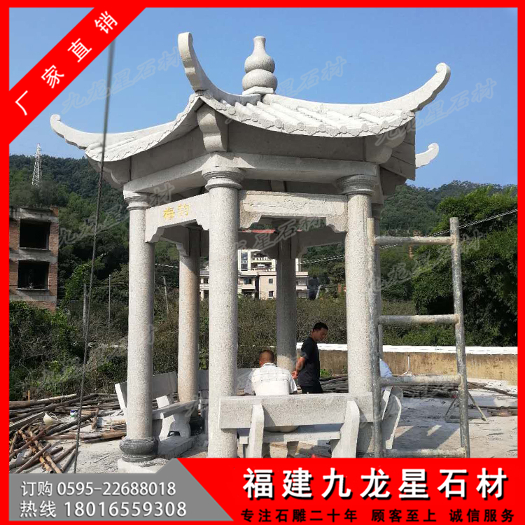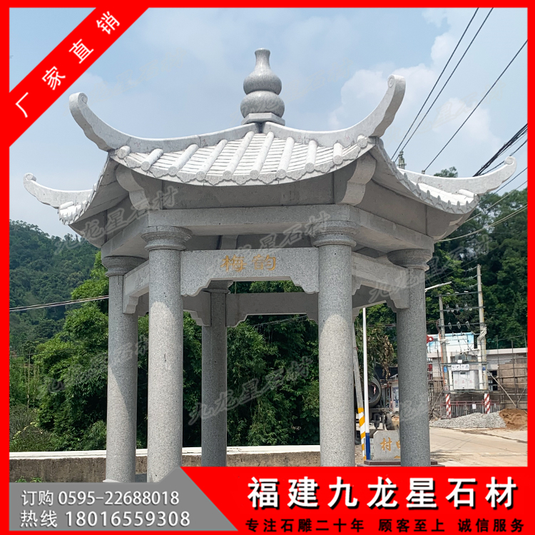 石亭子就各自帶有非常顯著的不同特色,而同時(shí)也必然受到所用石材特性的限制。比如花崗巖的色彩豐富,硬度較高比較適合在室外安裝,但是它的耐火性就比較差一些,那么就不適合安裝在比較干燥的公園。如果是使用青石的話(huà),它的顏色讓就是石亭子的一個(gè)局限,青石主要是以灰和灰白顏色為主,比較適合安裝在比較古香古色的公園內(nèi)。