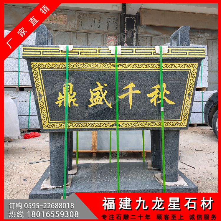 石雕香爐的制作石材通常是優(yōu)質(zhì)顏色偏深的花崗巖石料和青石石料,青石本身顏色呈現(xiàn)青色,較為古樸,青石石雕香爐突顯了整個香爐的莊重氛圍,為佛教圣地增添了幾分威嚴(yán)。石雕香爐的外形分為圓口、方形口、長方形口,圓口香爐一般是三足兩耳,方形香爐一般是四足兩耳,長方形香爐一般也是四足兩耳,還有少許兩層石雕香爐。