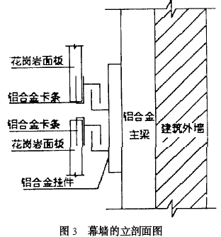 在本工程中,石材部分的加工工作在現(xiàn)場(chǎng)完成,右材采用的是意大利月亮白花崗巖板材,結(jié)構(gòu)膠采用的是由美國(guó)GE公司生產(chǎn)SSG-44DO型硅酮結(jié)構(gòu)密封膠。