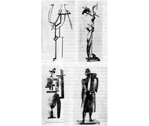 岡查列茲卻為擺脫畢加索的影響,找尋新的表現(xiàn)方式而努力。他宣稱:“借用新的手段,向空間凸出,用空間來描繪它;利用空間,并在空間進(jìn)行設(shè)計(jì),這樣,空間就好象是一種新發(fā)現(xiàn)的材料——這便是我的全部努力”。(5)