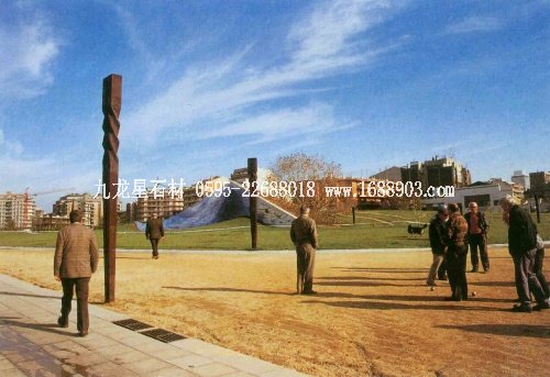 “造型景觀”是尺度相對(duì)較大的大地藝術(shù)綜合體。它與紀(jì)念功能、個(gè)人主題沒有直接關(guān)系,是一種在公共園區(qū)中極為貼切的將現(xiàn)代人的生活同自然、文化一體化的藝術(shù)。造型景觀是尺度相對(duì)較大的大地藝術(shù)綜合體;它與紀(jì)念功能、個(gè)人主題沒有直接關(guān)系,是一種在公共園區(qū)中極為貼切的將現(xiàn)代人的生活同自然、文化一體化的藝術(shù)。又是一種以造型、色彩和材料在環(huán)境中起主導(dǎo)作用、并能整合視野中各種造型要素的藝術(shù)。野口勇曾說:“我喜歡把園林當(dāng)作空間的雕塑……人們可以進(jìn)入這樣一個(gè)空間,它是他周圍真實(shí)的領(lǐng)域,當(dāng)一些精心考慮的物體和線條褙引入的時(shí)候,就具有了尺度和意義。這是雕塑創(chuàng)造空間的原因”。(13)