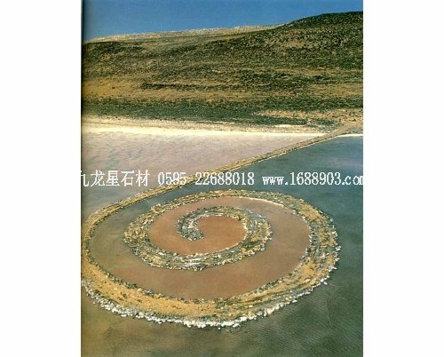 雕塑家羅伯持·史密森以最有震撼力的方式表達(dá)了他的這種天才藝術(shù)家思想,在美國猶他州偏遠(yuǎn)的大鹽湖筑造了一個(gè)名為《螺旋防波堤》的直徑為160英尺、螺旋長(zhǎng)1500英尺的巨大旋轉(zhuǎn)空間。他借助大型機(jī)械,用當(dāng)?shù)氐暮谏鋷r石、以堆積的這種松散方式塑造了他和大鹽湖的偉大傳奇。