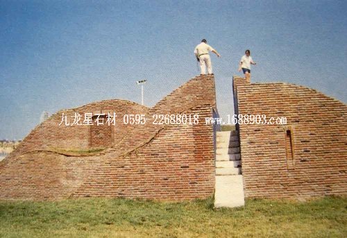 如果說奧克.德弗里斯在鹿特丹的那件作品像一支漫不經(jīng)心的童謠,綿延幾百米,不斷地帶給路人驚喜的話,亞歷山大.阿爾吉拉在馬德里郊外的那件作品似乎更為離奇。第一次見到它的人無不以為是紅磚外墻的公廁,用臺(tái)階分成男左女右兩部分。走近才發(fā)現(xiàn)是一座與周圍草地連在一起的雕塑作品,當(dāng)?shù)氐哪嗤帘粔痉e起來夯實(shí)成鋪滿草皮的波狀斜坡。從另一個(gè)角度看,仿佛原來就生長(zhǎng)在那里奇妙的土堆。大人完全可以放任小孩子們?cè)谀抢矧T自行車沖“浪”,或玩其它游戲。