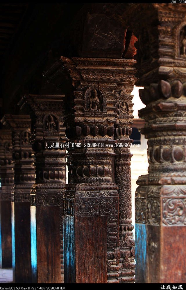 傳統(tǒng)的尼泊爾建筑,都使用雕刻木件,王宮和廟宇建筑自不必說(shuō),就是普通民居也是如此。使用雕刻木件處,主要是一些外露部分,如門(mén)、窗、廊柱、欄桿、屋頂及廊頂?shù)膿沃?。可以說(shuō),凡是外露的部分,有木件就有雕刻,而且都是人工雕刻。