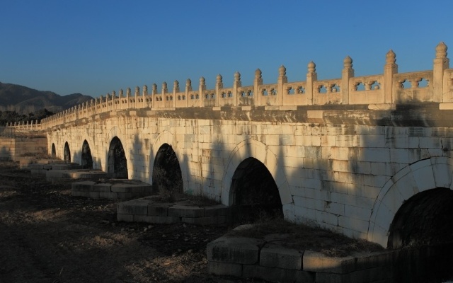 清代順治皇帝的孝陵里有一座七孔橋,它是陵區(qū)眾多橋梁中的佼佼者,橋孔最多,橋身最長(zhǎng),如玉虹垂落,雄偉壯觀。這是一座神奇別致的橋,特殊之處在橋欄板,乍一看與其他橋上潔白的玉欄沒(méi)啥兩樣,可用手輕輕一敲,則可發(fā)出金鐘銀鈴一般清脆悅耳的音響,使人大為驚異。這是因?yàn)闄诎迨现泻?0%的方解石,含有鐵質(zhì),所以才會(huì)有叮當(dāng)作響的妙音,如鐘如罄。建筑時(shí)根據(jù)每塊欄板含鐵量多少,按中國(guó)古代音律由宮、商、角、徵、羽五音組成,所以孝陵七孔石拱橋也稱(chēng)為“五音橋”。