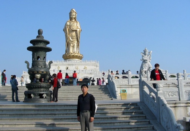 來(lái)禮佛廣場(chǎng)的路上我也買(mǎi)了幾柱高香,在上面的臺(tái)階左側(cè)為觀音菩薩奉上,凡是來(lái)普陀山的香客、游人無(wú)不對(duì)觀音菩薩畢恭畢敬。