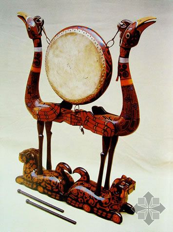 春秋戰(zhàn)國虎座鳥架懸鼓 高117.4厘米 湖北省江陵望山出土