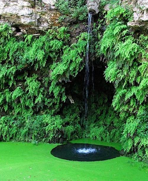 莊園景觀處處充滿特色,而水景則是園中最為突出的景觀。園中水景動靜結合,有規(guī)模宏大的大型噴泉雕塑,也有細細流水的流水階梯和小水渠。由第四層臺地洞府作為全園的水源,連接各個水景,再以底層的方形水池噴泉的形式作為高潮而結束。一些如流水階梯、底層水池噴泉和洞府等的美麗景觀不用多說,想說的是二層臺地上的長條形水渠。這水渠位于中軸線上,長條形大理石中間開縫裝有平靜的流水,這樣的設計讓我聯(lián)想到廣東的祠堂中也有類似的盛水物,下雨后積水,配上青苔和祠堂的柏樹,總給人幽靜、舒適感,在莊園這里也起到相同作用。樹蔭底下一切顯得和諧安靜,碰巧可能還會見到動物在這里喝水,這樣也剛好給主人修心看書的環(huán)境。水渠同時也起到引導和指向作用,突出了巖壁的半圓噴泉。維尼奧拉對丘陵地帶變化豐富的地形進行了靈活巧妙的利用,在三層平臺的圓形噴泉后,用一條華麗的鏈式水系穿越綠色坡地,使得漸行漸高的園林中軸終點落在了整個莊園的至高點上,并在此修筑亭臺方便從這兒俯瞰莊園全景。在這個新奇、精美、不斷變化的展現(xiàn)中,理水的高度技巧和精美的雕塑藝術完美的體現(xiàn)出巴洛克美感。