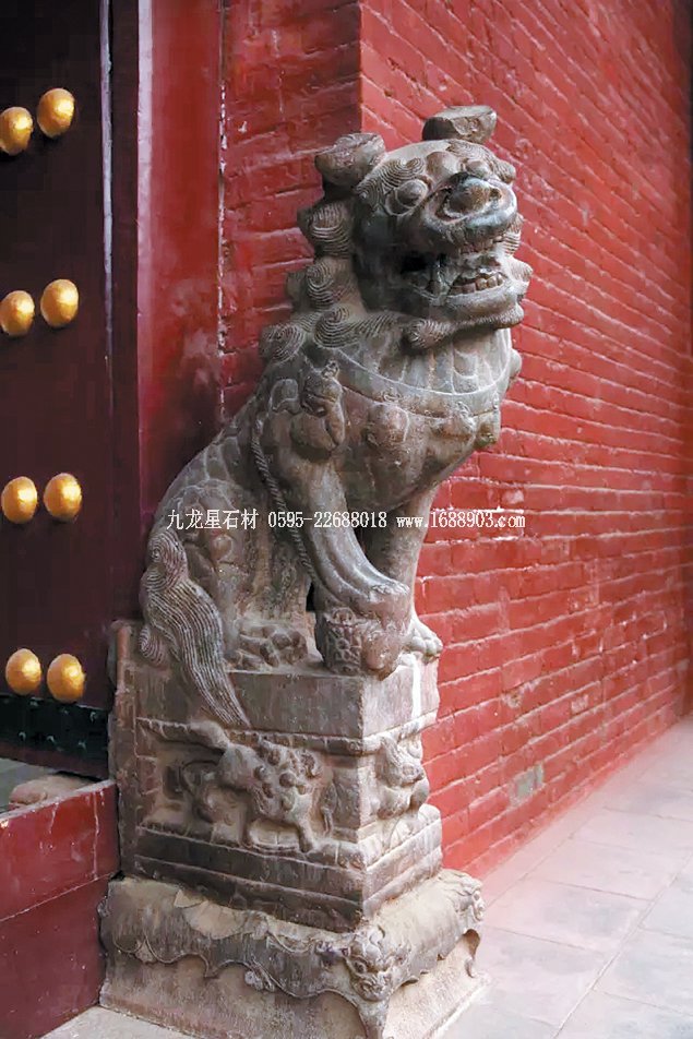 關(guān)帝殿前廊上的四根滾龍透雕石柱氣勢(shì)非凡。柱礎(chǔ)雕琢的是威猛的石雕獅子,柱礎(chǔ)上矗立四根透雕石柱。每根石柱上都纏繞著兩條巨龍,這種雕工手法俗稱“滾龍透花柱”。石雕刻工精細(xì),將龍的強(qiáng)健威儀刻畫得栩栩如生。在關(guān)帝殿橫梁上,門楣上,廊檐上,磚墻上,還有石雕龍、木雕龍、磚雕龍、琉璃龍,大大小小幾十條龍攀附在廊柱上,整個(gè)大殿變成了神龍世界,把中國(guó)龍文化展示得淋漓盡致。