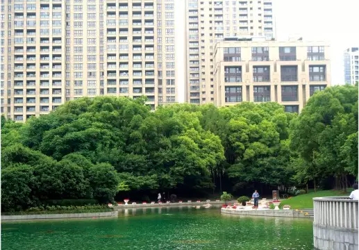濃密的背景林把都市的喧囂隔離開,營造了城中休閑綠地。