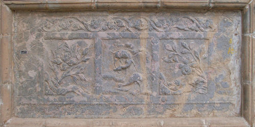這批石供桌的雕飾,圖案有人物、動物與花卉,或整體構(gòu)圖,或分區(qū)構(gòu)圖。雕刻手法基本為浮雕與陰刻線相結(jié)合。其中8件有紀(jì)年款識,為我們了解其時代工藝特征有重要的參考價值。