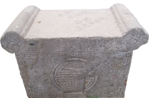 西安關(guān)中民俗藝術(shù)博物院收藏有一批明清及民國時期的石供桌,有分體式,也有整體式。其構(gòu)造可分為桌面、桌腿和裙面三部分。一般桌面兩端上翹,側(cè)面和正側(cè)面即裙面雕刻有紋飾。尤其是裙面紋飾頗為精彩,也是其精華所在,反映了當(dāng)時的石雕藝術(shù)。