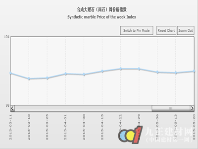 合成大理石類本周價(jià)格指數(shù)收?qǐng)?bào)于100.99點(diǎn),回升0.14點(diǎn),回升0.14%。本周合成大理石類價(jià)格有所回升,其中荒料及成品價(jià)格繼續(xù)與上周持平,大板價(jià)格小幅反彈。部分合成大理石大板因出口需求有所增加,交易價(jià)格小幅提升。