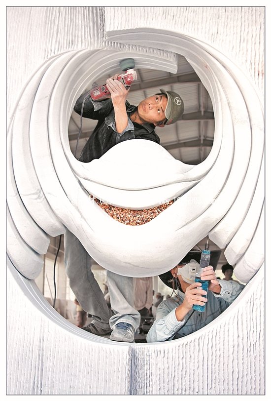 ——精湛技藝踏遍山河。在對惠安“世界石雕之都”的命名函中,世界手工藝理事會如是寫道:“惠安已成為國內(nèi)外產(chǎn)業(yè)規(guī)模最大、工藝水平最高、產(chǎn)品種類最齊全、加工能力最強的石雕石材工藝品生產(chǎn)加工與出口基地?!迸c之相映生輝的,是惠安雕藝工匠們踏遍祖國山河,將作品和技術(shù)傳揚至海內(nèi)外。此次攝影展中,就有不少攝影家們赴外地采風(fēng),用鏡頭將大江南北的惠安雕藝精品力作,仔細珍藏,拍下了《長沙青年毛澤東雕像》、《中央革命根據(jù)地歷史博物館大型浮雕(江西省瑞金市)》、《沙縣淘金山舍利塔》等佳作。而《傳統(tǒng)石雕龍柱》更攝下臺北龍山寺、福州定光寺、安溪文廟、晉江安海龍山寺、泉港峰尾東岳廟、泉港沙格靈慈宮等多個寺廟的龍柱,拼為組圖,集中展現(xiàn)惠安石匠們的精湛技藝。