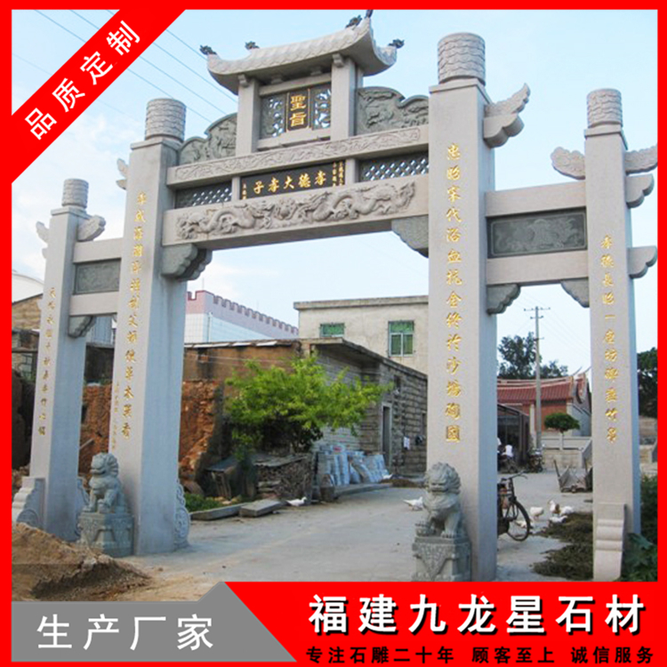 隨著歷史的發(fā)展,村門基本都修建石牌坊,也就是常說的村門石牌坊,村門牌坊是建筑文化中的重要組成部分,經(jīng)過悠久的歷史傳承和發(fā)展,美麗鄉(xiāng)村牌坊圖片樣式和功用在不斷增加,農(nóng)村牌坊蘊含豐富而深刻的文化內(nèi)涵。