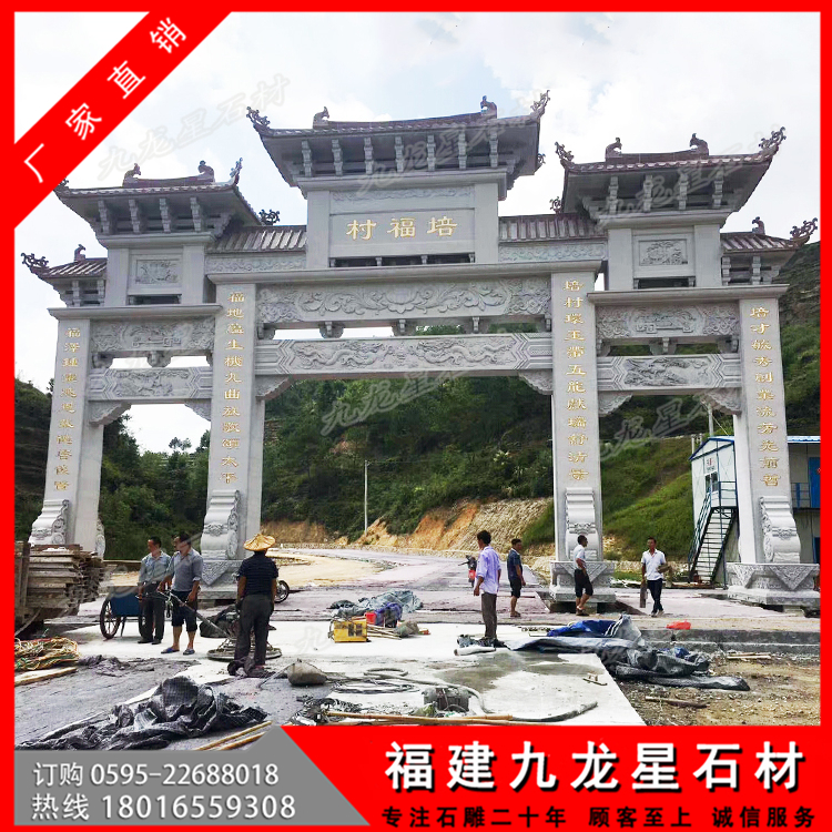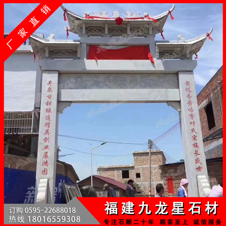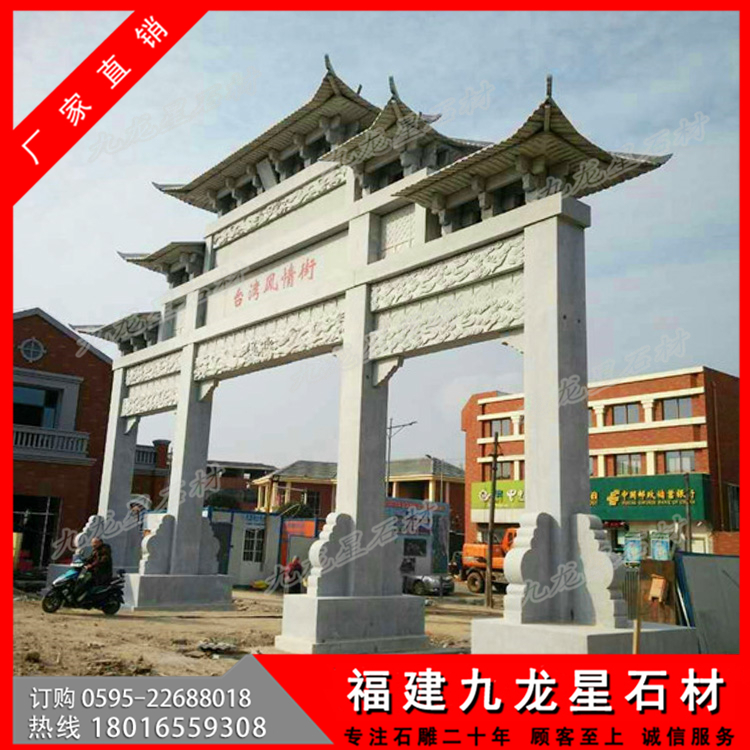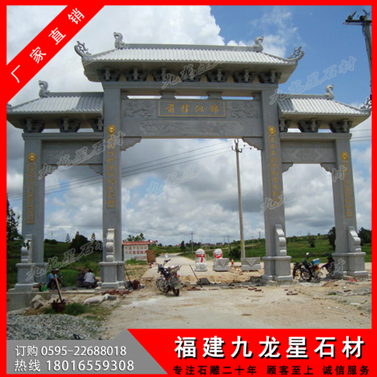 石材牌坊作為一種古色古香的建筑具有悠久的歷史,尤其是在廣大農(nóng)村地區(qū),牌坊幾乎隨處可見。特別是作為村莊入口牌坊,它可以作為一個(gè)村莊的標(biāo)志性建筑,受到廣泛的歡迎。無論是樣式復(fù)雜的牌坊還是簡單款式的牌坊,幾乎每個(gè)村子門口都會(huì)有一個(gè)這樣的建筑。