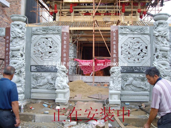 此對石獅子惠安獻錢獅造型,含基座高度為1.86米,材質(zhì)為福建青石。