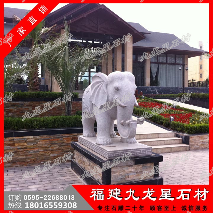 石雕大象也是吉祥如意的意思,吉祥如意就是吉“象”如意,心想事成的含義。大象是一個(gè)國家神圣的象征,也是觀音的坐奇,就是觀音的隨身隨行,故而也有去災(zāi)辟邪,保佑自己,佑護(hù)他人的寓意。象諧“祥”之音,傳統(tǒng)習(xí)俗中,象代表了吉祥?!跋蟆蹦芙o人間帶來祥瑞,象微天下太平?!跋蟆奔幢硎竞推?、美好和幸福。 大象力大魁武,性靈卻溫和柔順,相傳象為搖光之星生成,能兆靈瑞,古佛就是乘象從天而降;只有在人君自養(yǎng)有節(jié)時(shí),靈象才出現(xiàn)。