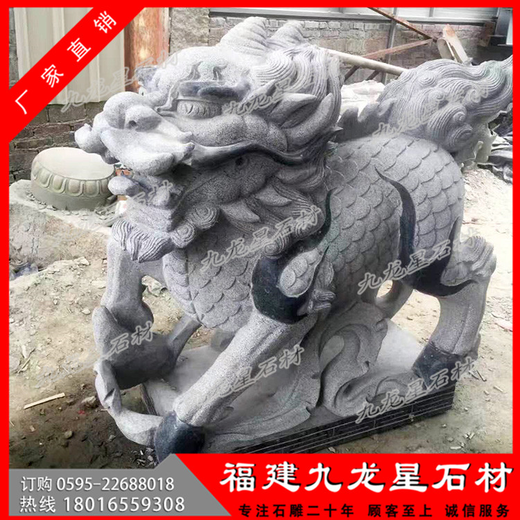 石刻麒麟是中國傳統(tǒng)工藝品之一。民間認為麒麟有鎮(zhèn)宅辟邪,增添家中吉祥的作用。石刻麒麟是古代的仁獸,集龍頭、鹿角、獅眼、虎背、熊腰、蛇鱗、馬蹄、豬尾于一身,乃吉祥之寶,從古到今都是公堂上的裝飾,以振官威之用,也是權貴的象征。 福建惠安有著極為豐富的石材資源,用**天青墨玉、霞玉、緬甸玉、漢白玉、墨玉、佘太玉、砂巖、大理石、花崗石、銀灰白石、雪花白等石材玉料雕刻石刻麒麟。