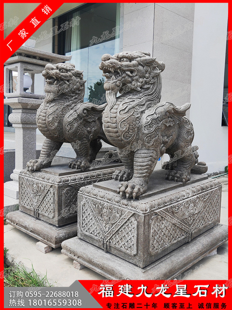 銀行門口石貔貅裝飾物從古到今都受到人們的親睞,不管是佩戴的,還是擺放的,貔貅的吉祥寓意可以為人們帶來財運、吉祥、好運和健康等。在古時候,人們常常將貔貅當做是保護人們的神獸,貔貅它的特點就是有嘴而沒有肛門,就是可以吞萬物而不泄, 銀行門口石貔貅的特點就是只進不出的意思,不但可以為人們招財進寶,還有著保護主人吉祥的功能。